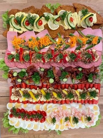 - Røde pølser m/remoulade, ketchup og ristede løg